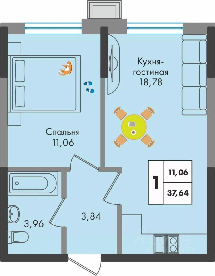 Общая площадь37,64 м²