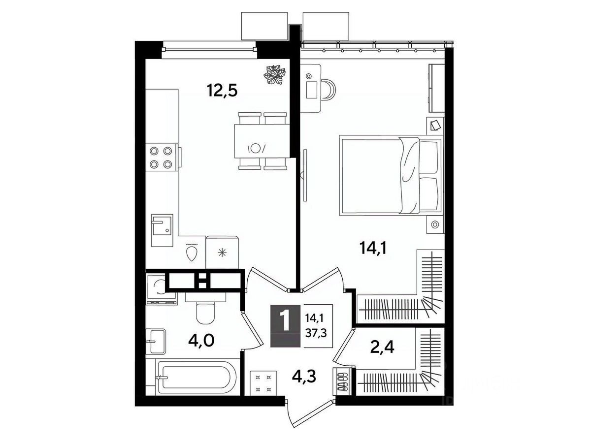 В продаже 1-комнатная квартира от застройщика! Мкр. "DOGMA PARK" г. Краснодар, Литер 33 Срок сдачи: 3 кв. 2027, общей площадью 37.3 кв.м., на 15 этаже.