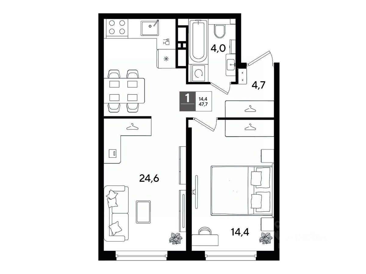 В продаже 1-комнатная квартира от застройщика! Мкр. "DOGMA PARK" г. Краснодар, Литер 24 Срок сдачи: 4 кв. 2027, общей площадью 47.7 кв.м., на 12 этаже.
