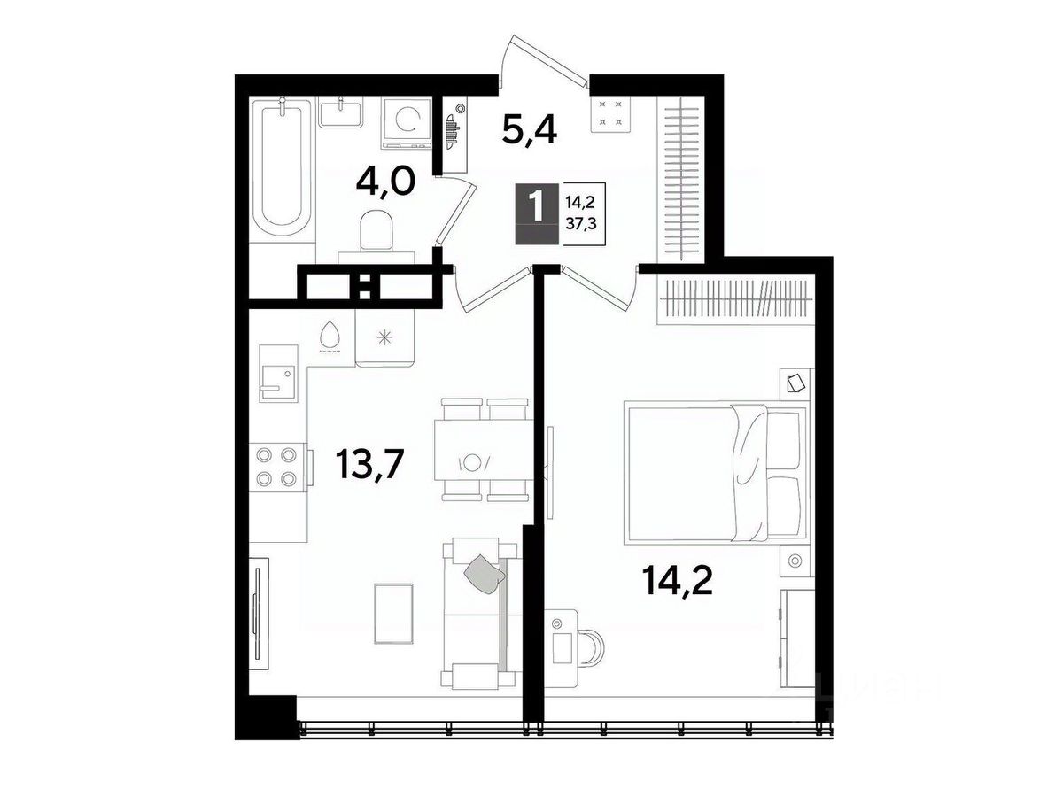 В продаже 1-комнатная квартира от застройщика! Мкр. "DOGMA PARK" г. Краснодар, Литер 30 Срок сдачи: 3 кв. 2027, общей площадью 37.3 кв.м., на 15 этаже.