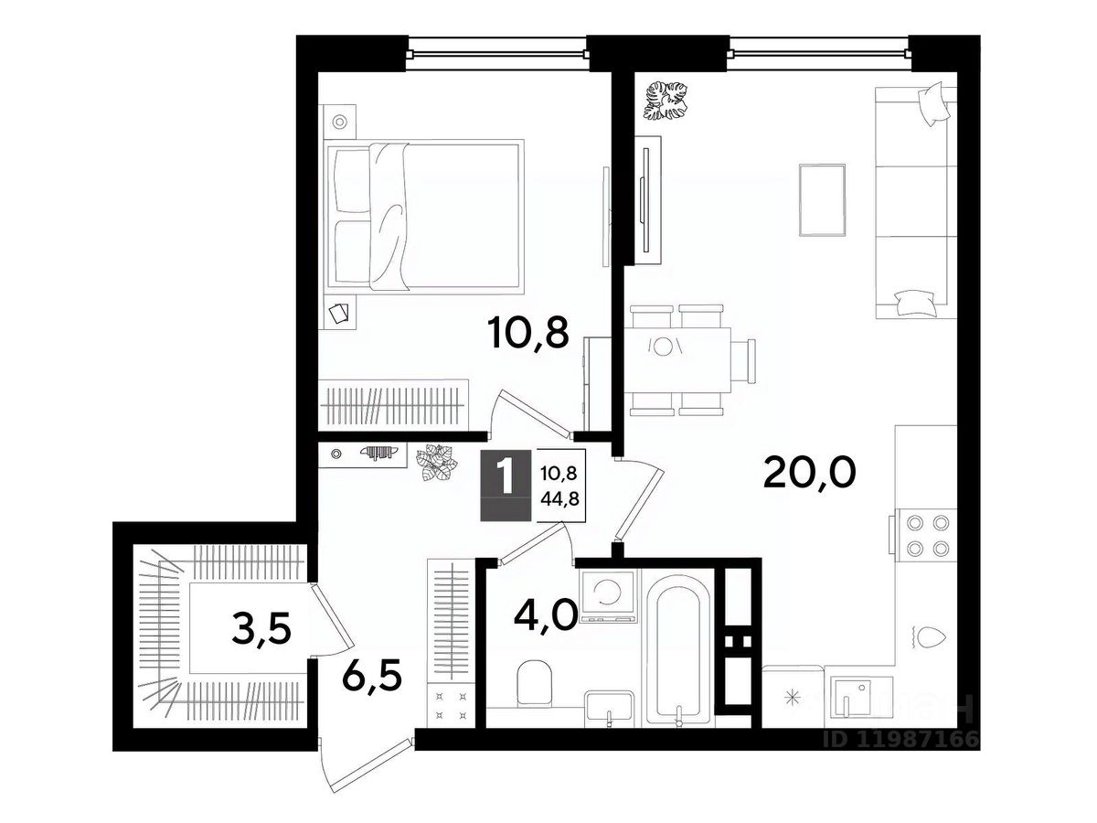 В продаже 1-комнатная квартира от застройщика! Мкр. "DOGMA PARK" г. Краснодар, Литер 35 Срок сдачи: 4 кв. 2027, общей площадью 44.8 кв.м., на 12 этаже.