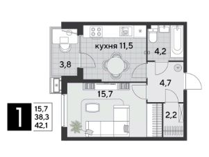 Срок сдачи: 1 кв. 2026, общей площадью 42.1 кв.м., на 2 этаже.