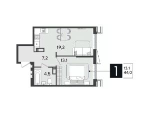 Срок сдачи: 1 кв. 2026, общей площадью 44 кв.м., на 18 этаже.