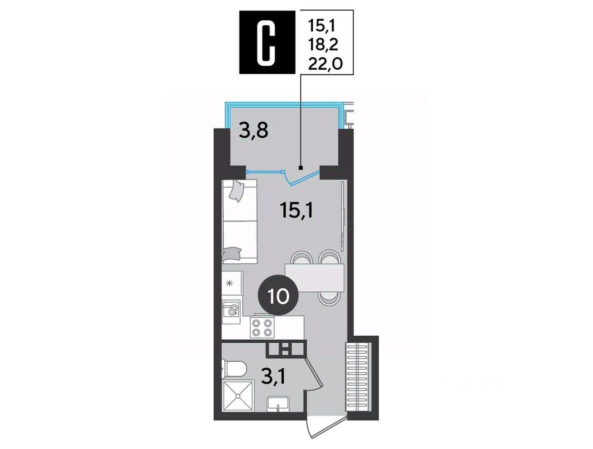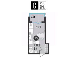 Срок сдачи: 2 кв. 2026, общей площадью 22 кв.м., на 9 этаже.
