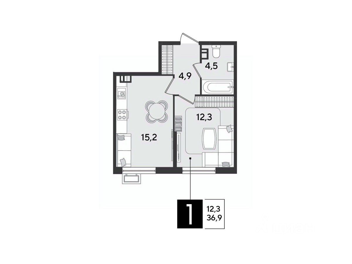 Срок сдачи: 2 кв. 2026, общей площадью 36.9 кв.м., на 7 этаже.