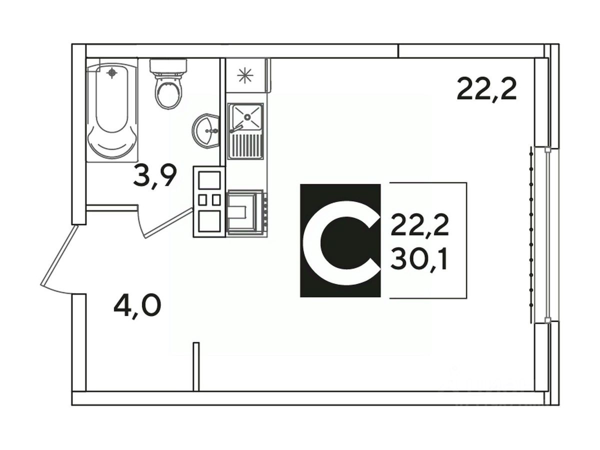 Общая площадь30,6 м²