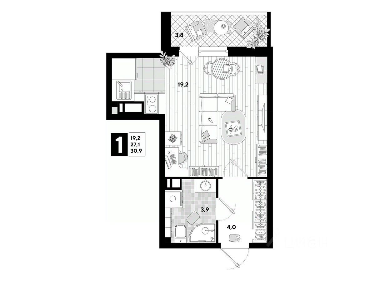 В продаже квартира-студия от застройщика! Мкр. "Самолет" 5 очередь, г. Краснодар, Литер 28 Срок сдачи: 4 кв. 2024, общей площадью 30.9 кв.м., на 3 этаже.