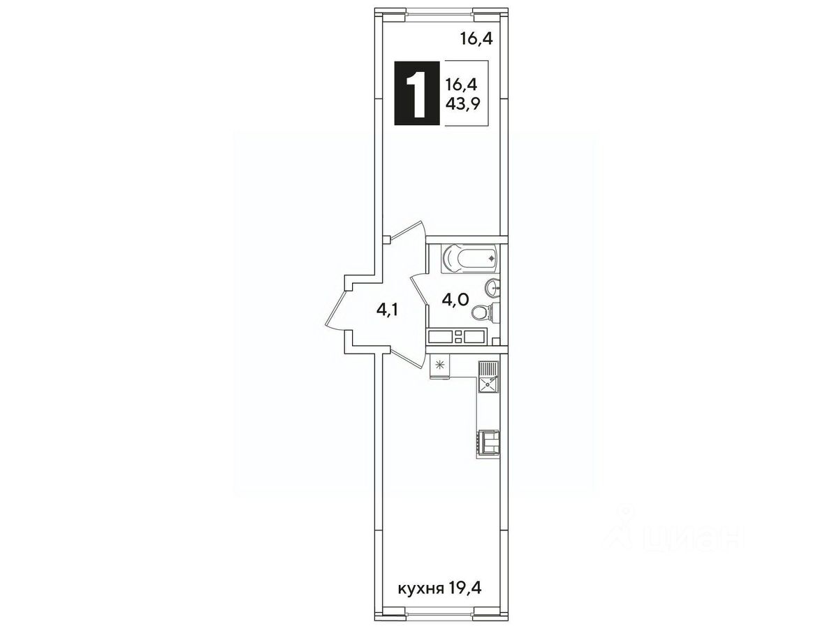 Общая площадь43,9 м²