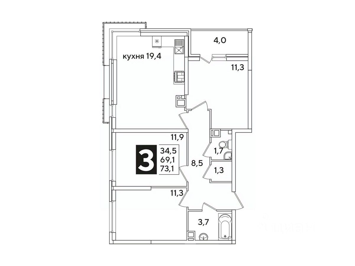 Общая площадь73,1 м²