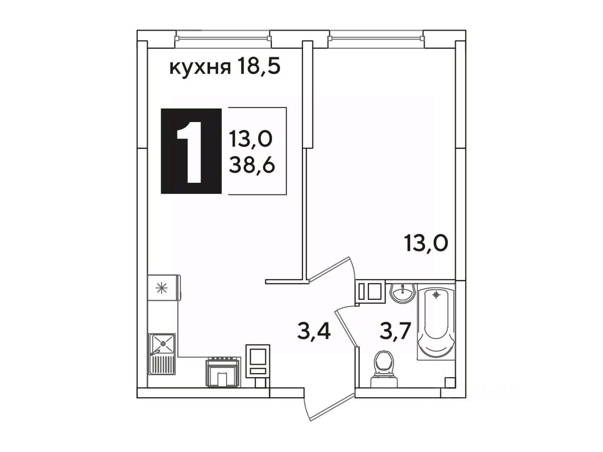 Общая площадь38,6 м²