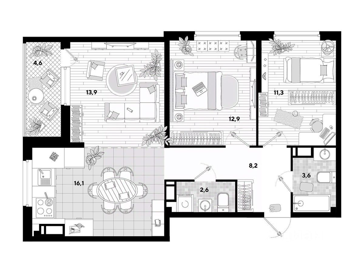 В продаже 3-комнатная квартира от застройщика! Мкр. "Самолет" 3 очередь, г. Краснодар, Литер 18 Срок сдачи: 2 кв. 2024, общей площадью 73.1 кв.м., на 14 этаже.