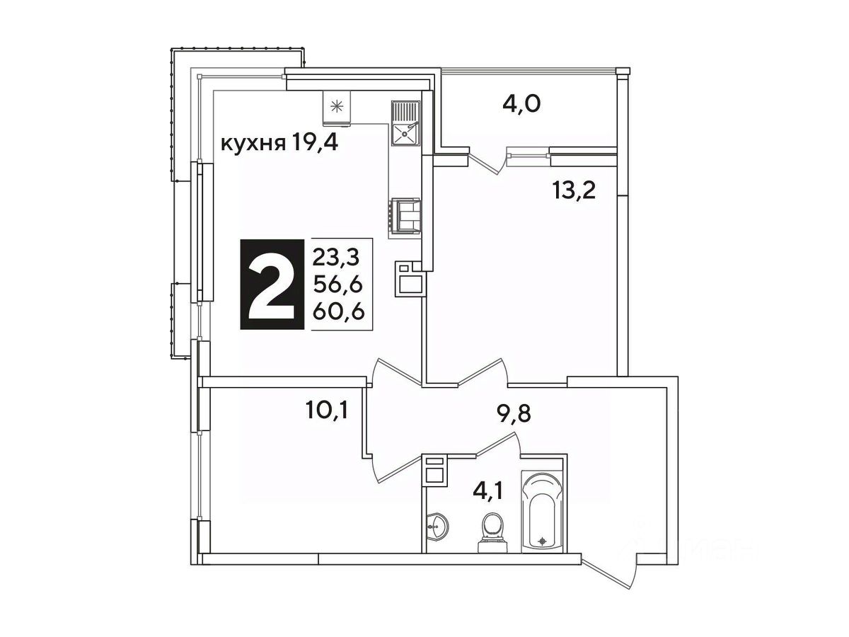 Общая площадь60,6 м²