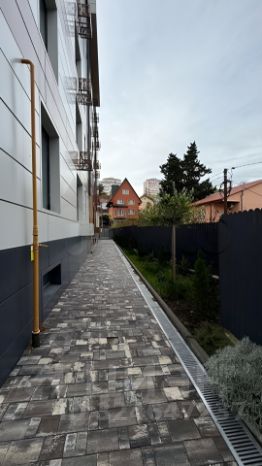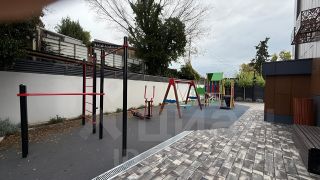 Закрытый двор с безопасной детской и спортивной площадками.