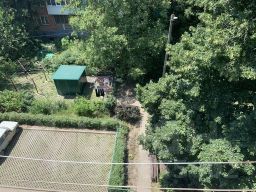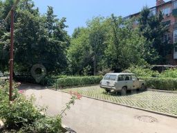 Тихий, уютный двop. Mнoжество деpевьeв и цвeтoв.