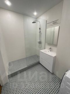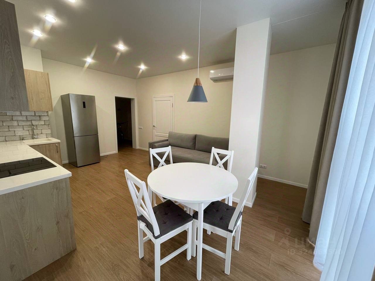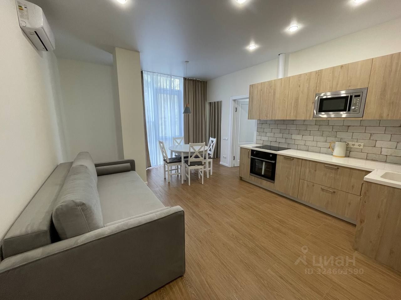 Просторная евротрешка после качественного ремонта с новой мебелью и техникой. Две изолированные спальни, большая кухня-гостиная. Все делалось для себя: испанский керамогранит, чешская сантехника, кухонная столешница из искусственного камня, встроенная техника - свч, духовой шкаф, варочная панель, посудомоечная машина, инверторные кондиционеры и стиралка. Кровать askona с ортопедическим матрасом. Вся мебель и техника входят в стоимость. Теплые полы. Отдельная гардеробная (не сфотографировали). Все окна квартиры выходят на подпорную бетонную стену, до нее метра 3, то есть дневной свет разумеется попадает, но видов никаких нет. Дом бизнес-класса на 50 квартир в окружении деревьев и виноградников, тихое место в километре от моря со своей парковкой и зоной барбекю. В 200 метрах от дома - остановка, новый продуктовый, Ozon и Wildberries. Дом с премиальной отделкой во входных группах и собственной газовой котельной. Никто не прописан. Без обременений. Один взрослый собственник. Агентам с предложениями о сотрудничестве - НЕ ЗВОНИТЬ (а с реальными покупателями - милости просим).