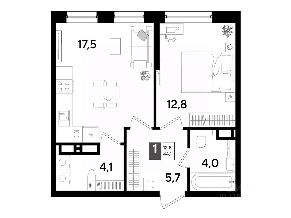 В продаже 1-комнатная квартира от застройщика! Мкр. "DOGMA PARK" г. Краснодар, Литер 33 Срок сдачи: 3 кв. 2027, общей площадью 44.1 кв.м., на 11 этаже.