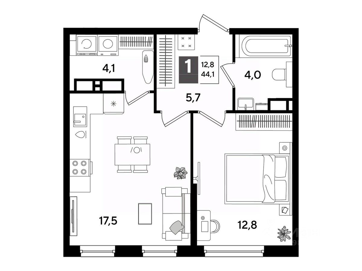 В продаже 1-комнатная квартира от застройщика! Мкр. "DOGMA PARK" г. Краснодар, Литер 20 Срок сдачи: 4 кв. 2027, общей площадью 44.1 кв.м., на 13 этаже.
