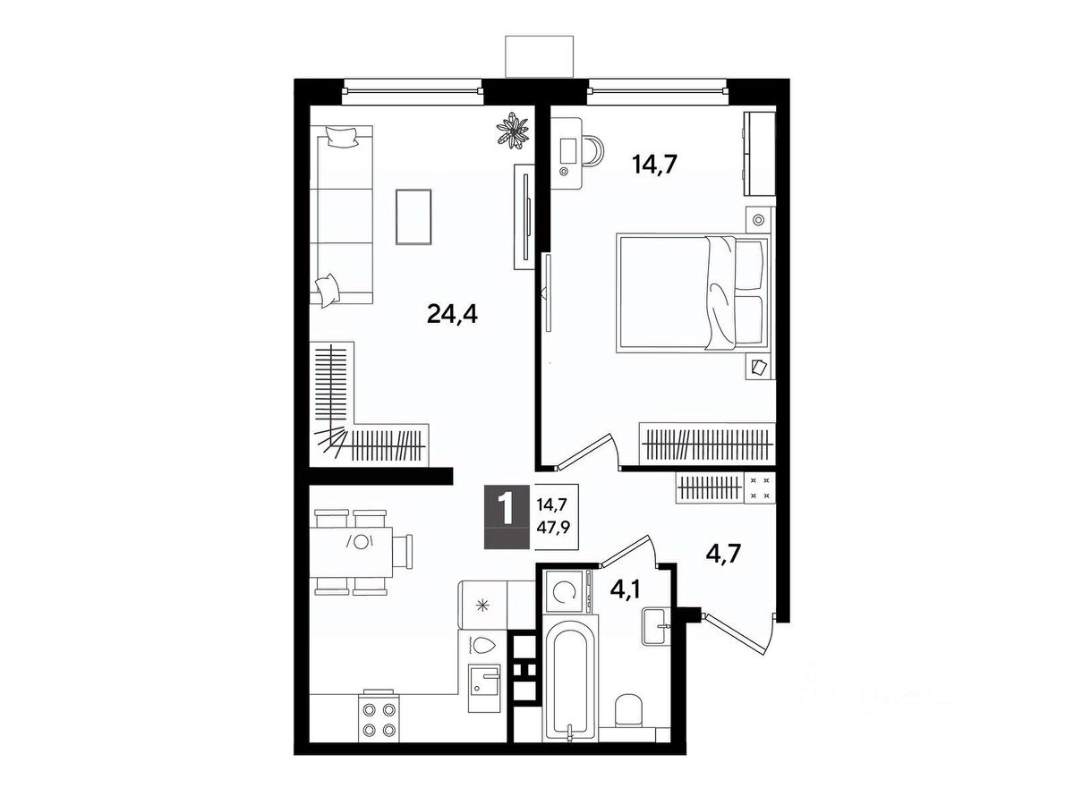 В продаже 1-комнатная квартира от застройщика! Мкр. "DOGMA PARK" г. Краснодар, Литер 16 Срок сдачи: 4 кв. 2027, общей площадью 47.9 кв.м., на 8 этаже.