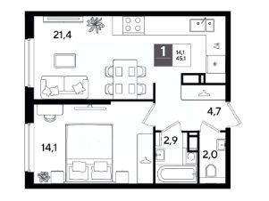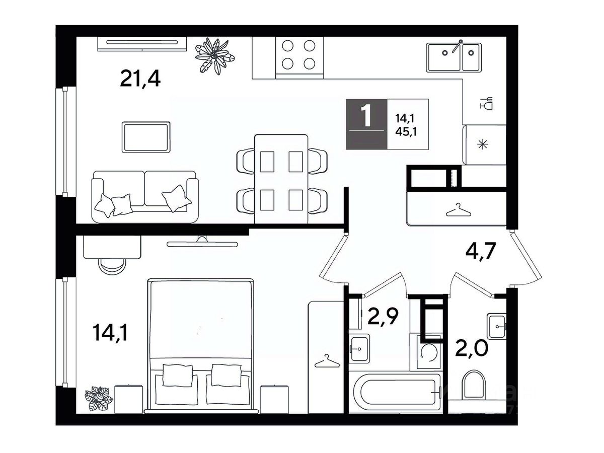В продаже 1-комнатная квартира от застройщика! Мкр. "DOGMA PARK" г. Краснодар, Литер 24 Срок сдачи: 4 кв. 2027, общей площадью 45.1 кв.м., на 11 этаже.