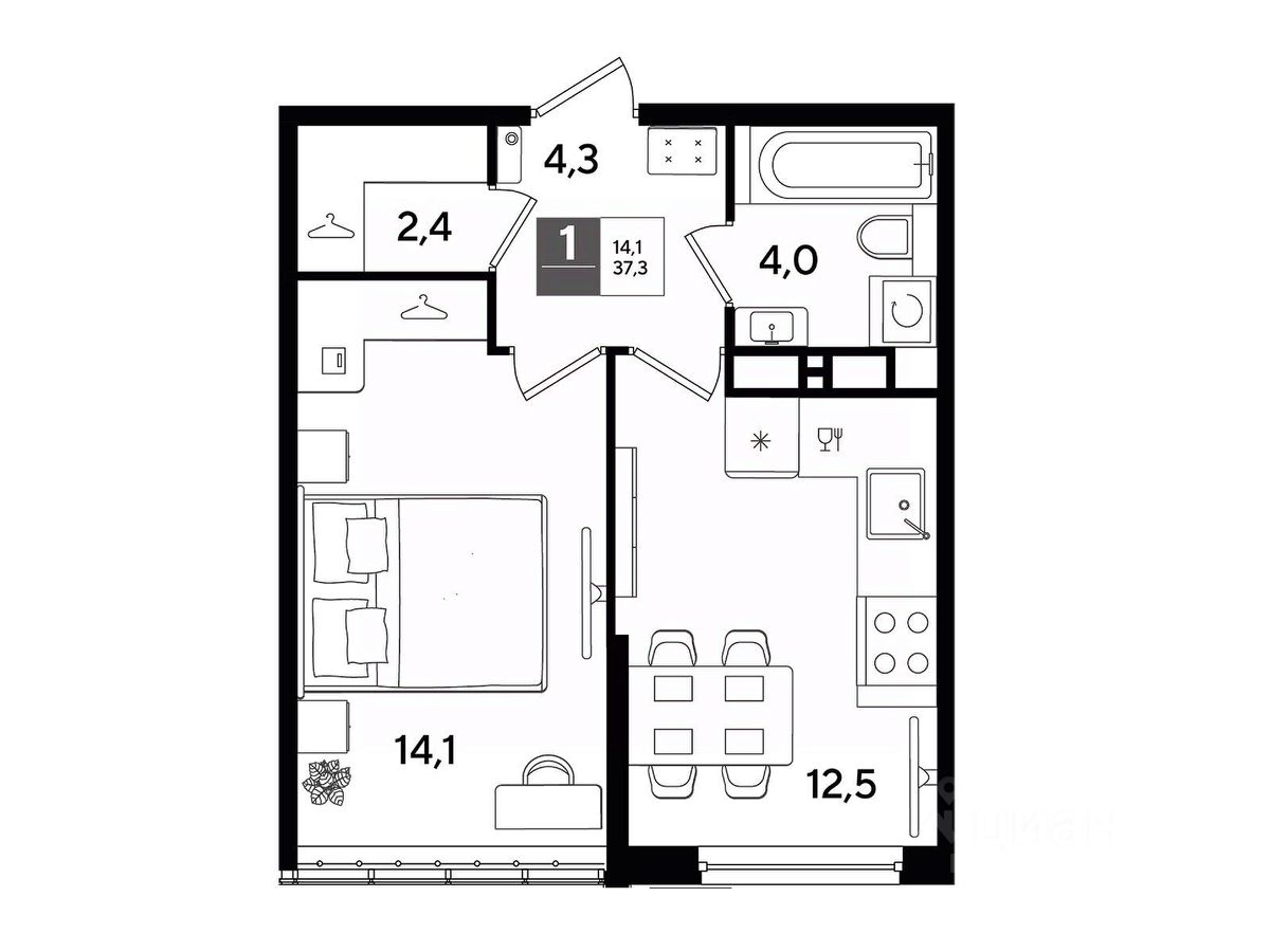 В продаже 1-комнатная квартира от застройщика! Мкр. "DOGMA PARK" г. Краснодар, Литер 22 Срок сдачи: 4 кв. 2027, общей площадью 37.3 кв.м., на 11 этаже.