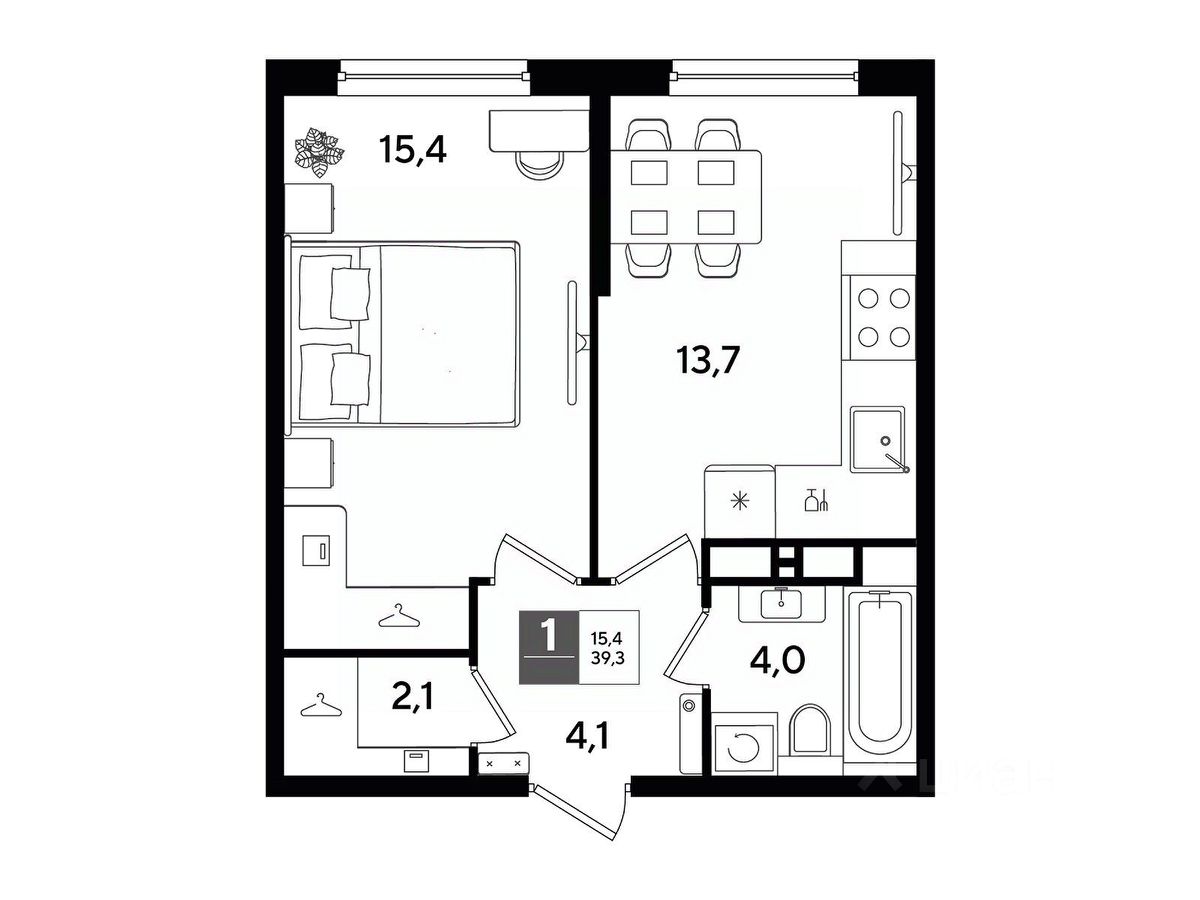 В продаже 1-комнатная квартира от застройщика! Мкр. "DOGMA PARK" г. Краснодар, Литер 22 Срок сдачи: 4 кв. 2027, общей площадью 39.3 кв.м., на 11 этаже.