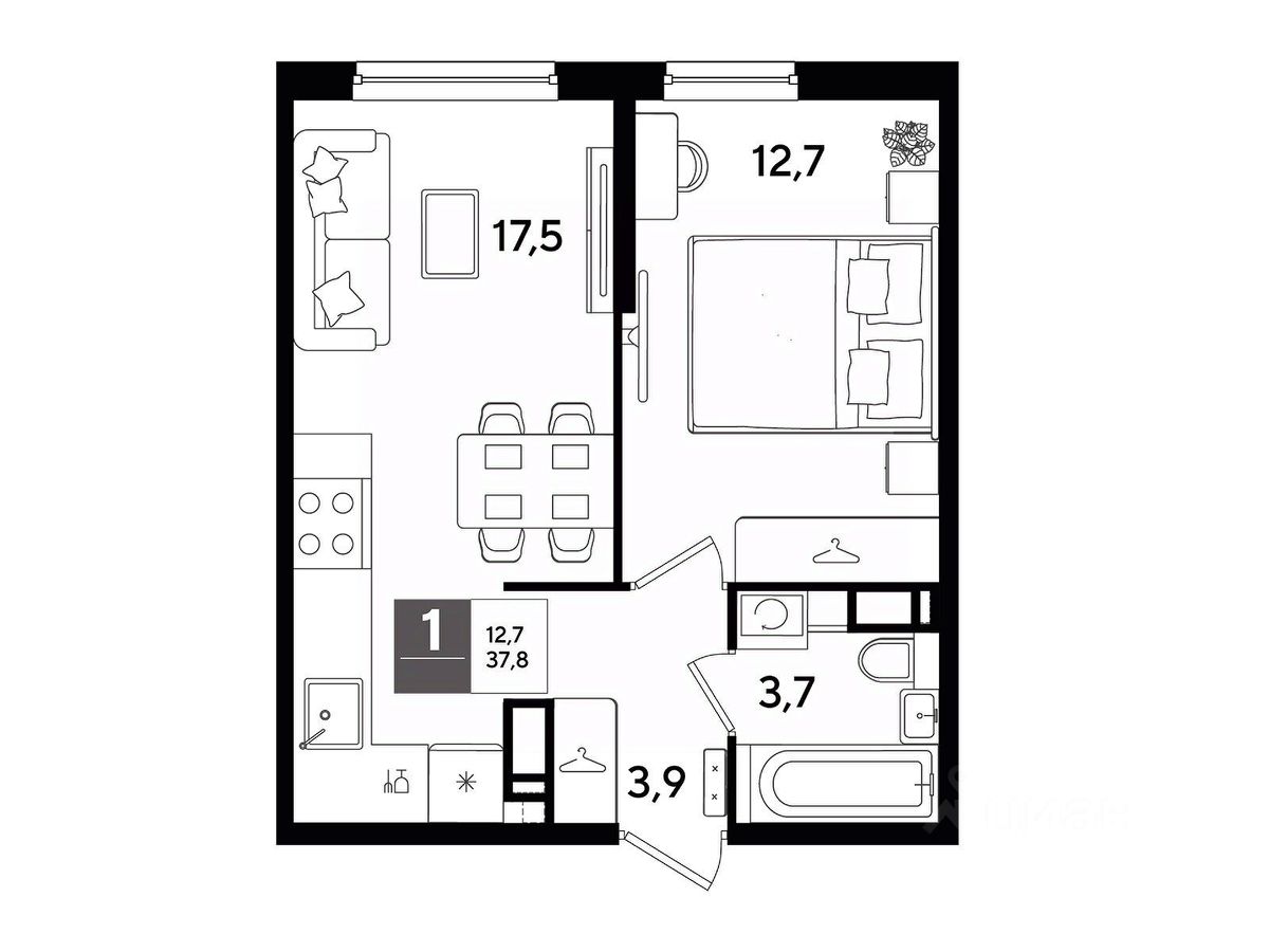 В продаже 1-комнатная квартира от застройщика! Мкр. "DOGMA PARK" г. Краснодар, Литер 22 Срок сдачи: 4 кв. 2027, общей площадью 37.8 кв.м., на 11 этаже.
