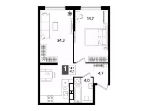 В продаже 1-комнатная квартира от застройщика! Мкр. "DOGMA PARK" г. Краснодар, Литер 34 Срок сдачи: 4 кв. 2027, общей площадью 47.7 кв.м., на 11 этаже.
