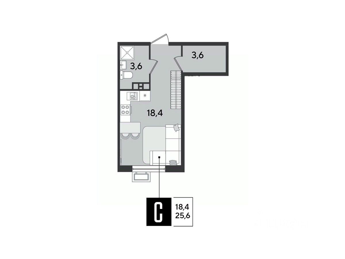 Срок сдачи: 2 кв. 2026, общей площадью 25.6 кв.м., на 9 этаже.