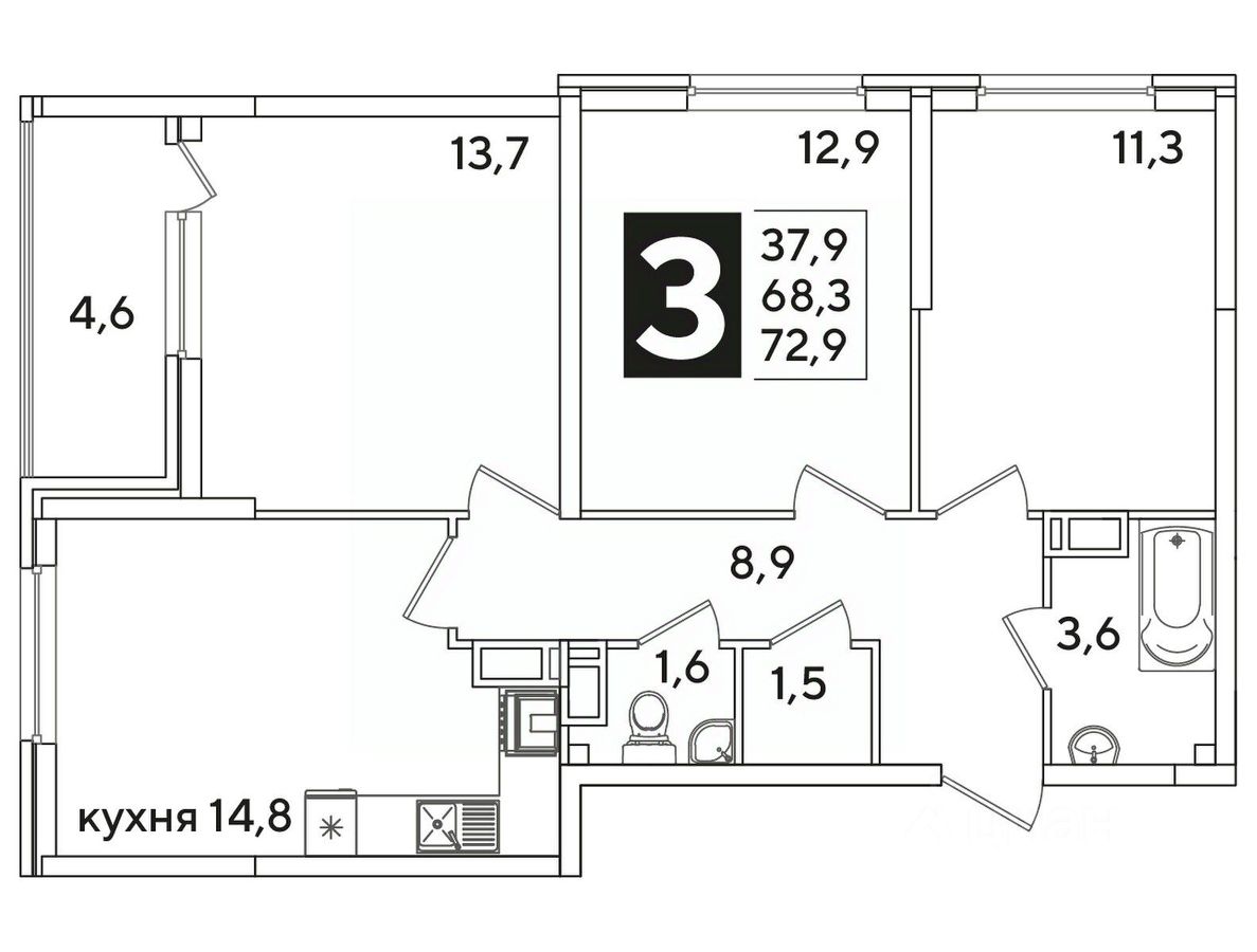 Общая площадь72,9 м²