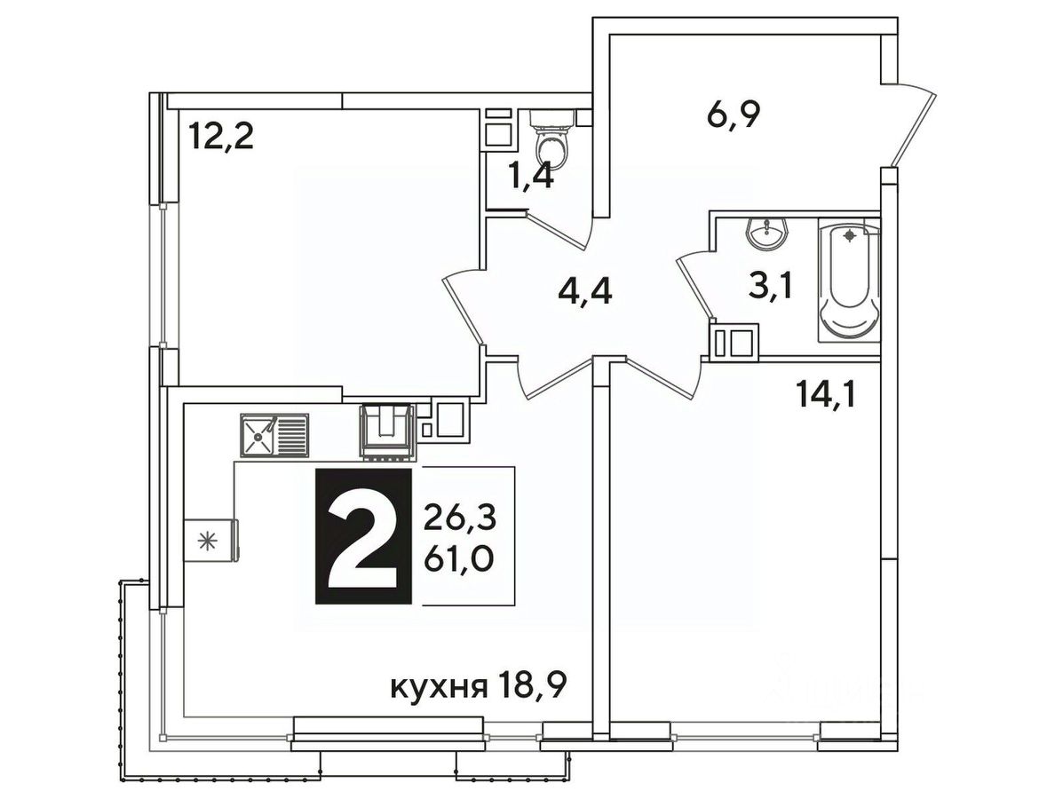 Общая площадь61 м²