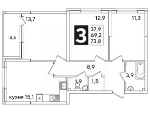 Продается 3-комн. квартира, 73,3 м²