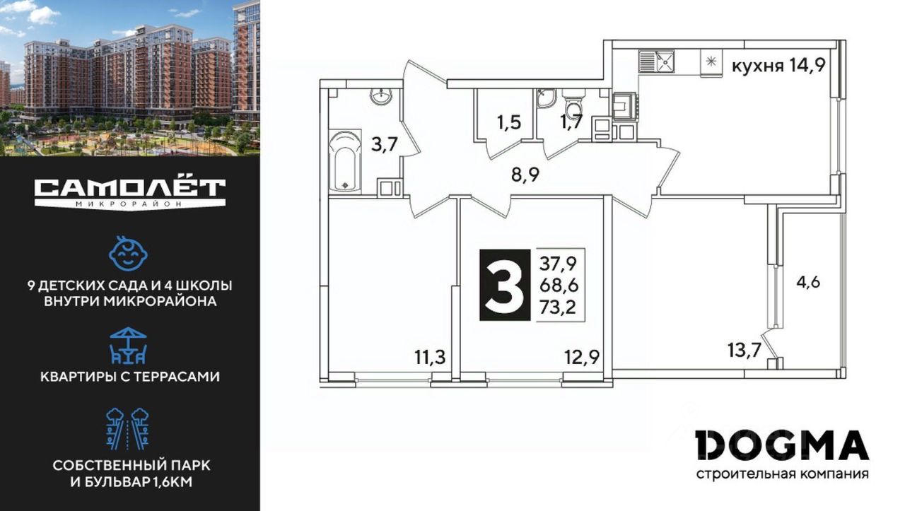 "САМОЛЁТ" - концептуальный жилой микрорайон, который расположен на северо-западе Краснодара, в районе Западного Обхода. Квартал спроектирован как "город в городе", поэтому здесь будет всё для комфортной жизни: современные дома с разными планировками, дороги, школы и детские сады, поликлиника, торговые центры, парки и аллеи. Микрорайон находится далеко от промышленных предприятий, сочетает удобство городской жизни и экологически благоприятную среду. Инфраструктура нового микрорайона: • Видовые квартиры с панорамным остеклением • Безбарьерная среда • Просторные стильные лобби • Сквозные подъезды • Квартиры с террасами • Улучшенная отделка от застройщика • Подземный паркинг и кладовые • Видеонаблюдение и круглосуточный пост охраны • 9 детских садов • 4 школы в шаговой доступности • Кольцевая велодорожка • Аллея спорта • Собственный пешеходный бульвар 1,6 км • Дубовая аллея • 11 павильонов фудкорта • Светомузыкальный пешеходный фонтан протяжённостью 55 м • Торговые галереи • Храм сорока Севастийских мучеников • Скейт-парк • Детская акваплощадка • Детский городок • Крытая зона для бокса и единоборств • Площадки для выгула собак • 9 остановок городского транспорта • Дороги-дублёры