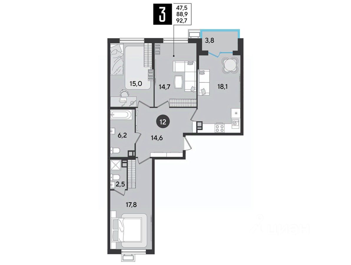 4 кв. 2025, общей площадью 92.7 кв.м., на 4 этаже.