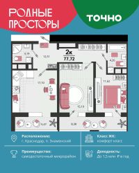 "Родные просторы"- самодостаточный микрорайон, который реализован по принципу комплексного развития территории, где есть вся инфраструктура для комфортной жизни. На территории 41 га 29 домов от 9 до 24 этажей, уютные дворы со спортивными и игровыми площадками, социальные и коммерческие объекты, зеленые массивы и фонтаны. Главная точка притяжения "Родных просторов" - парк семейного отдыха площадью 9 га, 4,5 км прогулочных аллей, амфитеатр для мероприятий, кинофестивальная площадка. Особая гордость микрорайона современная школа на 1550 мест и 3 детских сада "Ладушки", "Веснушки" и "Топотушки" на 880 малышей. В центре микрорайона строятся фитнес-клуб BALANCE с акватермальным комплексом и собственная поликлиника, площадью более 5000 кв.м. Уже открыт православный храм Святых Первоверховных апостолов Петра и Павла.