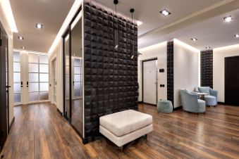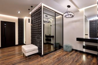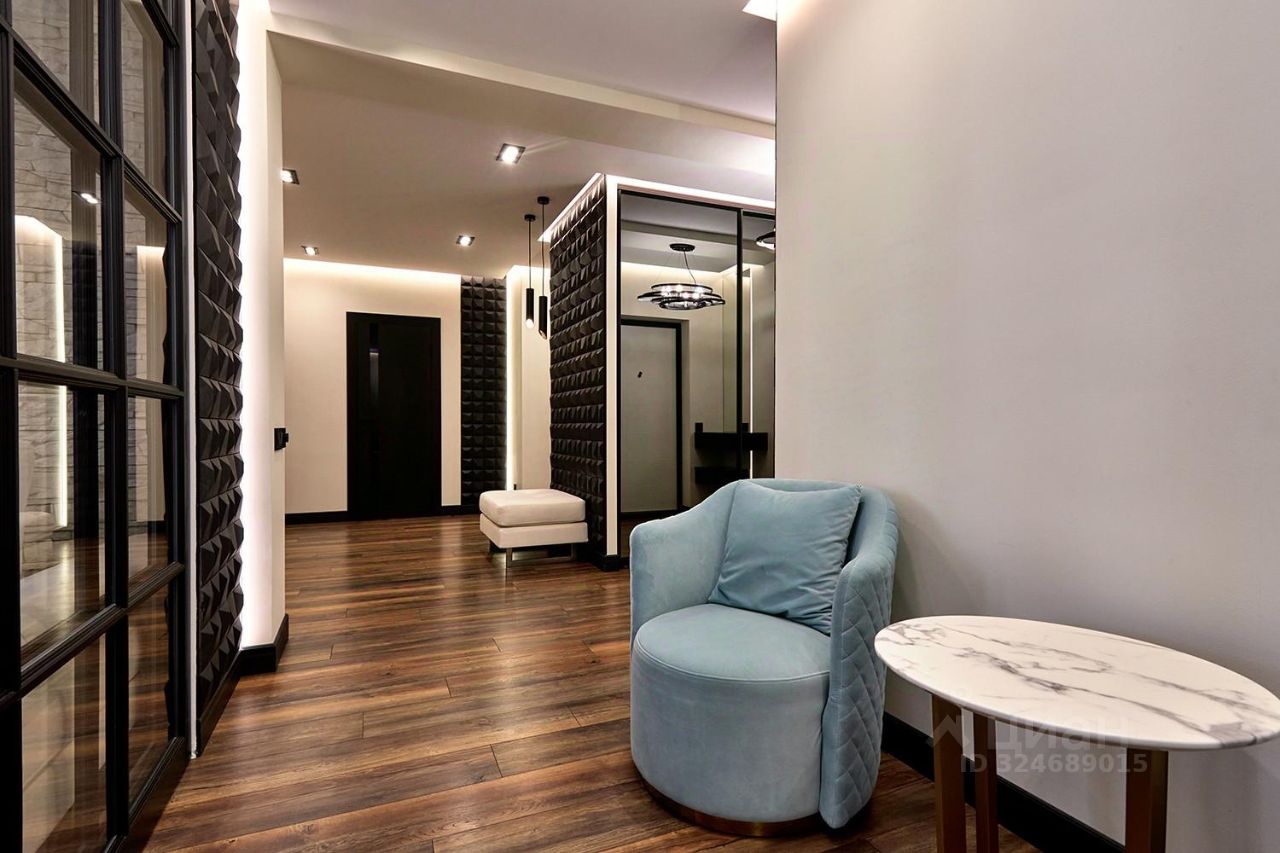 Планировка: общ. S=150 кв. м, 3 спальни, 3 санузла, столовая-зал, кухня, кабинет, гардеробная, постирочная. Дизайнерский ремонт в стиле современного минимализма на основе натуральных фактур и материалов (дерево, камень, декоративная штукатурка). Обставлена элитной мебелью от ведущих брендов Еstеtikа, Gаrdа Dсоr, Мr Dооrs, Еlfа, укомплектованный полностью встроенной бытовой техникой от Наir, Wеissgаuff, Dеlоnghi, Еlесtrоluх, а также эко-камином. В каждой комнате плазменные ТВ, в зале и спальне взрослых большие плазменные системы - телевизор 65 диагональю (более 165 см), в спальне взрослых встроенная система Sаmsung Frаmе с эффектом интерактивной картины. По всей квартире встроенная многоуровневая подсветка: подсветка парящего потолка, вертикальная система освещения коридора, подсветка полок, полов, встроенные светильники и люстры.