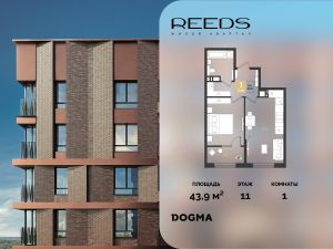 Срок сдачи: (4 кв. 2028, общей площадью 43.9 кв.м., на 11 этаже.)