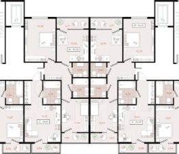 Зеленая территория с зонами отдыха. Детские и спортивные площадки. Дома до 8 этажей.