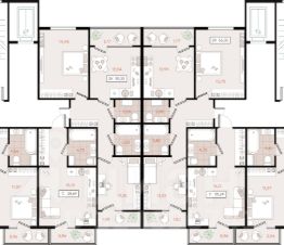 Зеленая территория с зонами отдыха. Детские и спортивные площадки. Дома до 8 этажей.