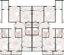 Зеленая территория с зонами отдыха. Детские и спортивные площадки. Дома до 8 этажей.