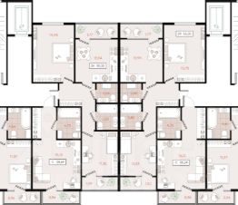 Зеленая территория с зонами отдыха. Детские и спортивные площадки. Дома до 8 этажей.