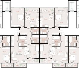 Зеленая территория с зонами отдыха. Детские и спортивные площадки. Дома до 8 этажей.