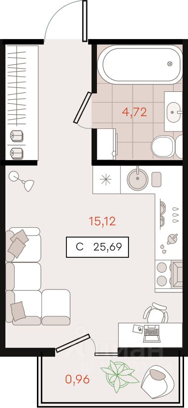 25,69 м²