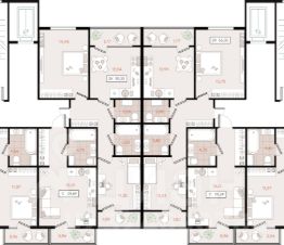 Зеленая территория с зонами отдыха. Детские и спортивные площадки. Дома до 8 этажей.