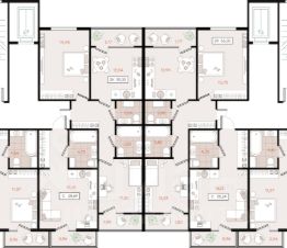 Зеленая территория с зонами отдыха. Детские и спортивные площадки. Дома до 8 этажей.