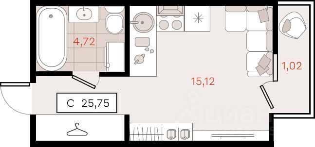25,75 м²