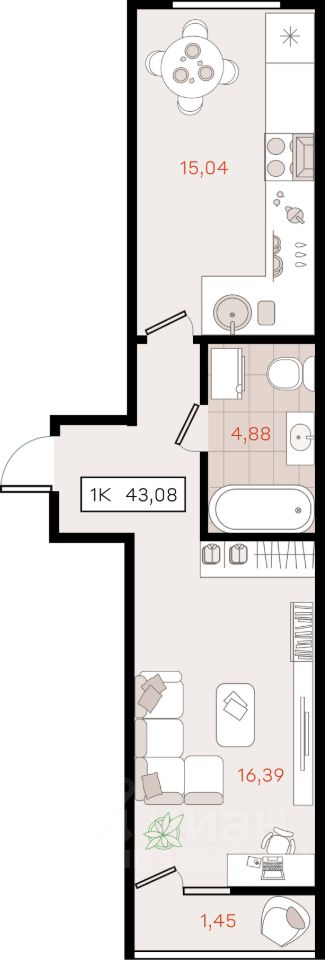 43,08 м²