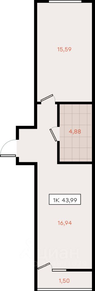 43,99 м²