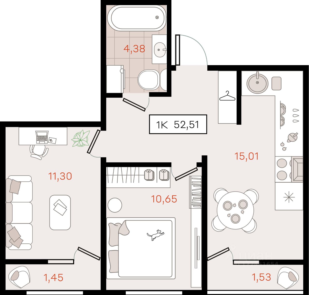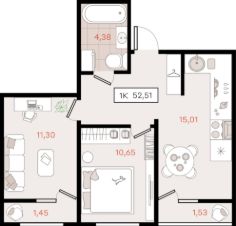 52,51 м²