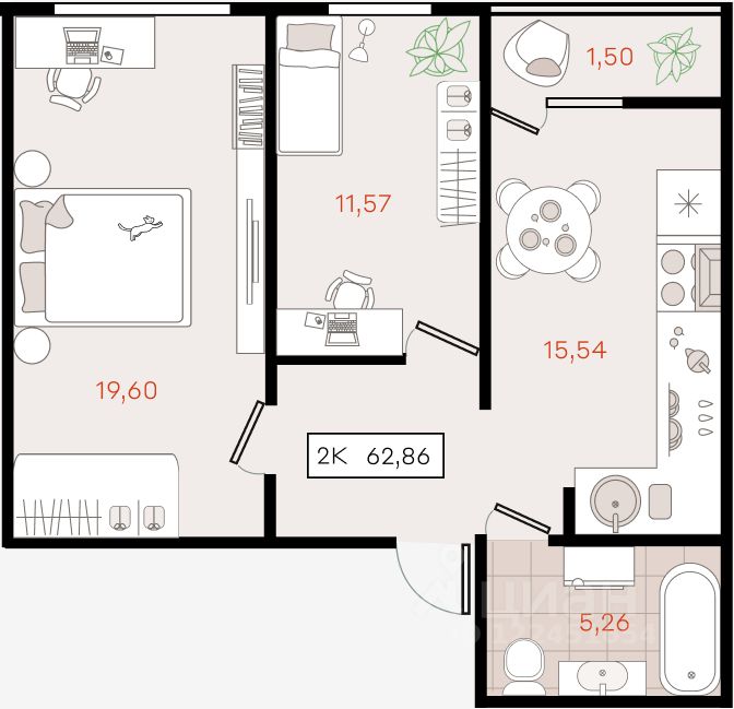 62,86 м²