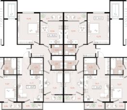 Зеленая территория с зонами отдыха. Детские и спортивные площадки. Дома до 8 этажей.